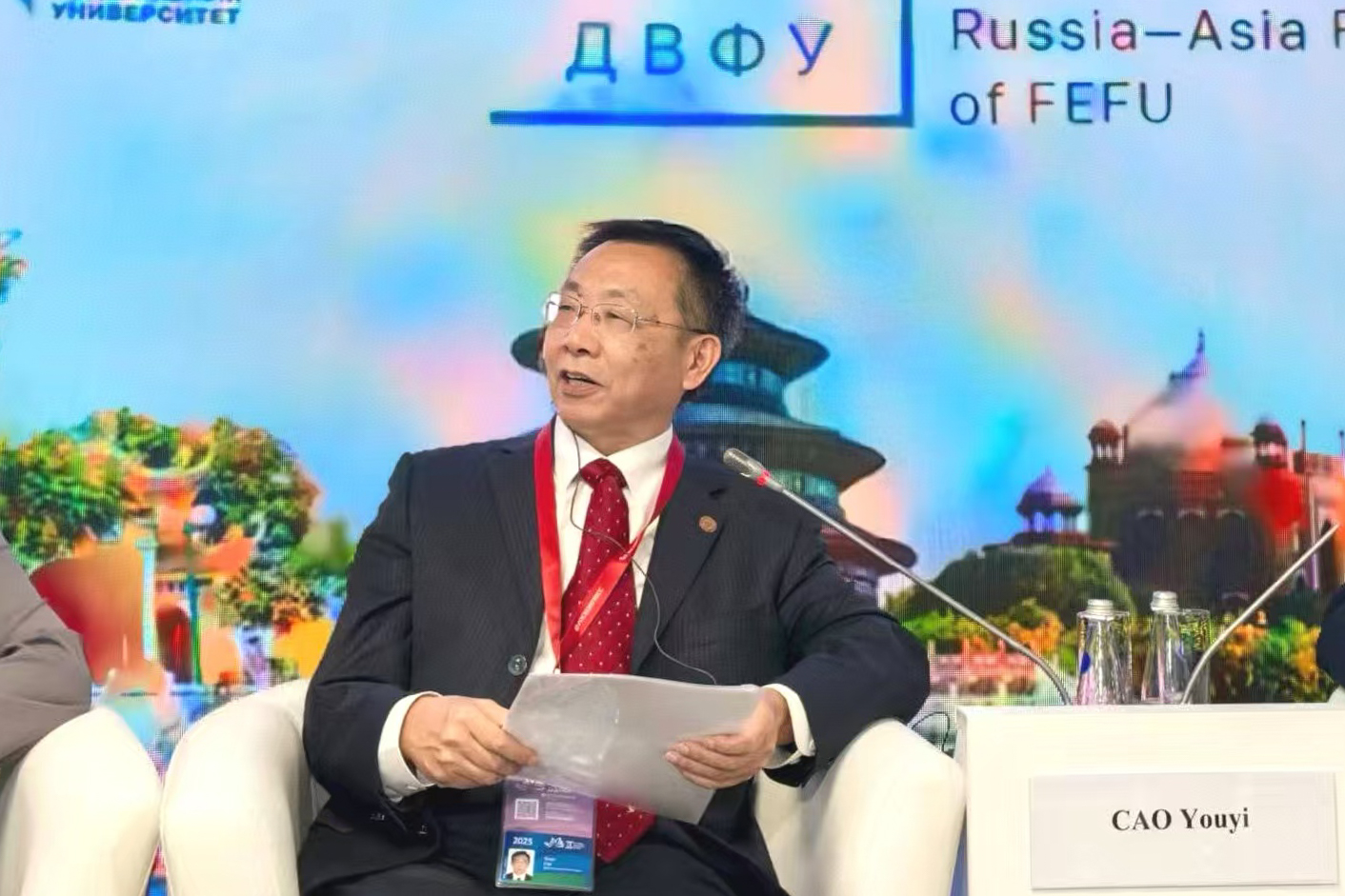 9月3日,代表團參加在遠東聯邦大學舉辦的俄亞學院成立開幕式暨“俄羅斯-亞洲師資隊伍:俄亞人力資源潛力的開發”論壇,并作發言。論壇上,遠東聯邦大學校長鮑里斯·科羅別茨表示,華東師范大學位于經濟與政治決策的重要中心上海,且擁有深厚的俄羅斯研究力量,兩校即將簽署的聯合培養項目將為兩校的合作奠定堅實的基礎。曹友誼在發言中表示,上海與符拉迪沃斯托克(海參崴),分別作為中俄對外開放的窗口,肩負著重要使命。華東師范大學自創立之初便深耕蘇俄研究,如今在“區域國別學”學科建設浪潮中,對俄羅斯及歐亞地區的研究與人才培養更是重中之重。兩校聯合學位項目將成為雙方務實合作的起點,并進一步拓展多學科、多層次、多類型的交流合作,為中俄人民增進相互認知、促進共同發展貢獻力量。