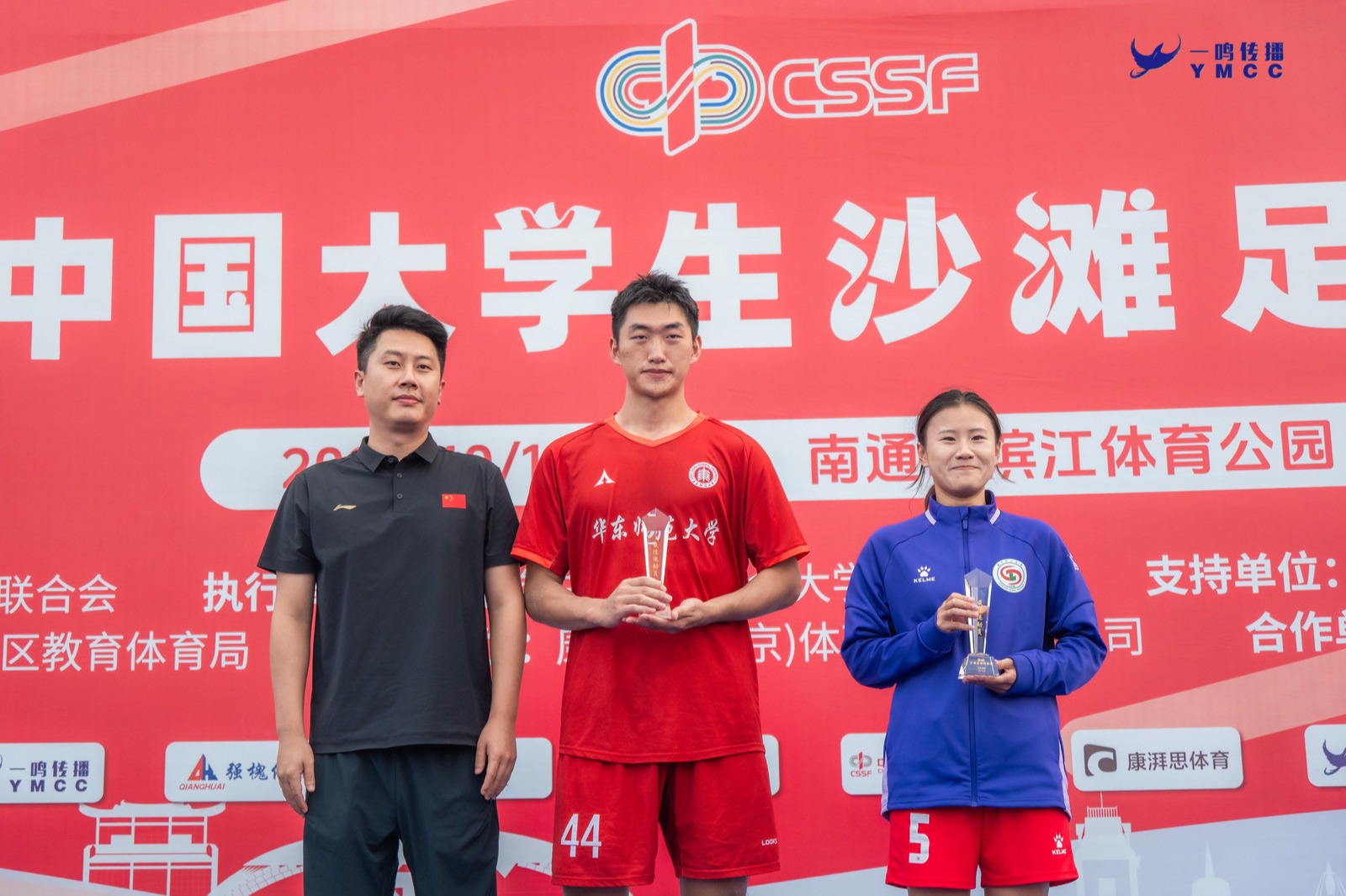 10月11日至17日,由中國學生體育聯(lián)合會主辦的第4屆中國大學生沙灘足球錦標賽在江蘇省南通市濱江體育公園舉行。華東師范大學男子足球隊在教練員劉宇的帶領下,奪得全國總冠軍,展現(xiàn)了卓越的團隊實力與頑強拼搏的體育精神。